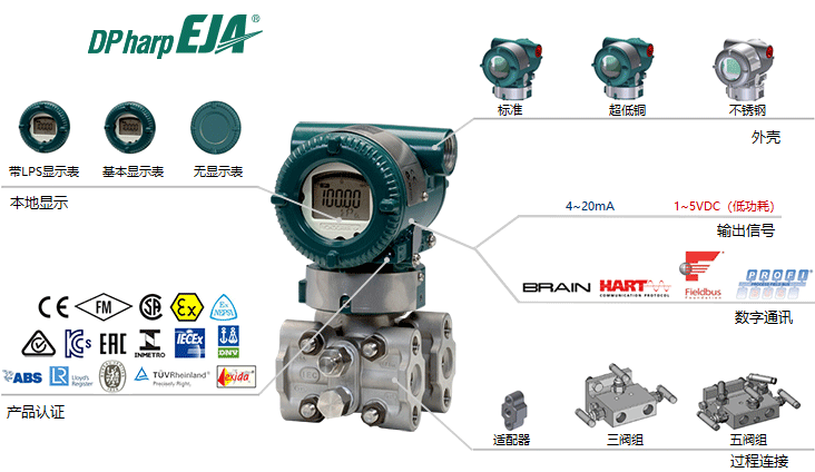 EJA110E高性能差压变送器采用单晶硅谐振式传感器技术,适用于测量液体、气体或蒸汽的流量、液位、密度和压力